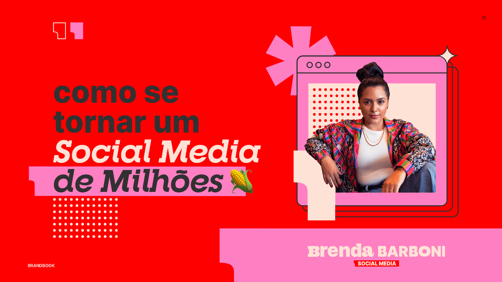 Social media com passagens por marcas como Me Poupe! e iFood, a marca da Brenda foi inspirada na Pop Art, com cores vibrantes e formas dinâmicas que traduzem sua força no universo digital dos creators e a fazem se destacar no segmento!