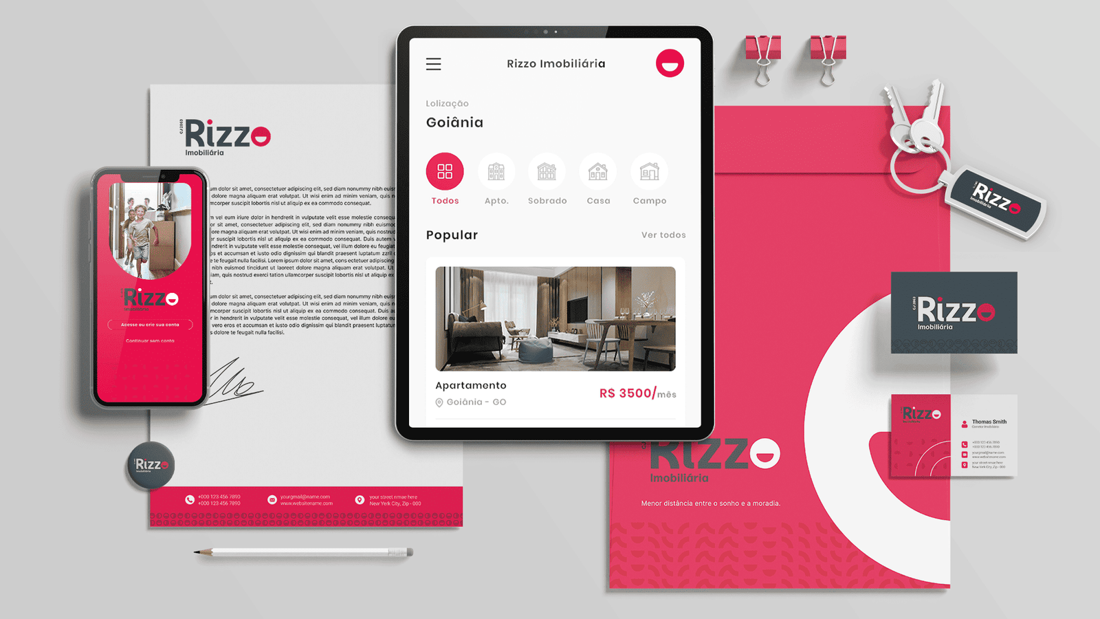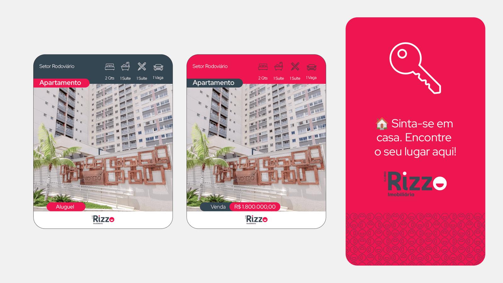 Mais do que uma imobiliária, o Grupo Rizzo se posiciona como uma empresa inovadora no setor. Desenvolvemos um redesign completo da marca, trazendo sofisticação e dinamismo para comunicar essa proposta disruptiva e contemporânea.