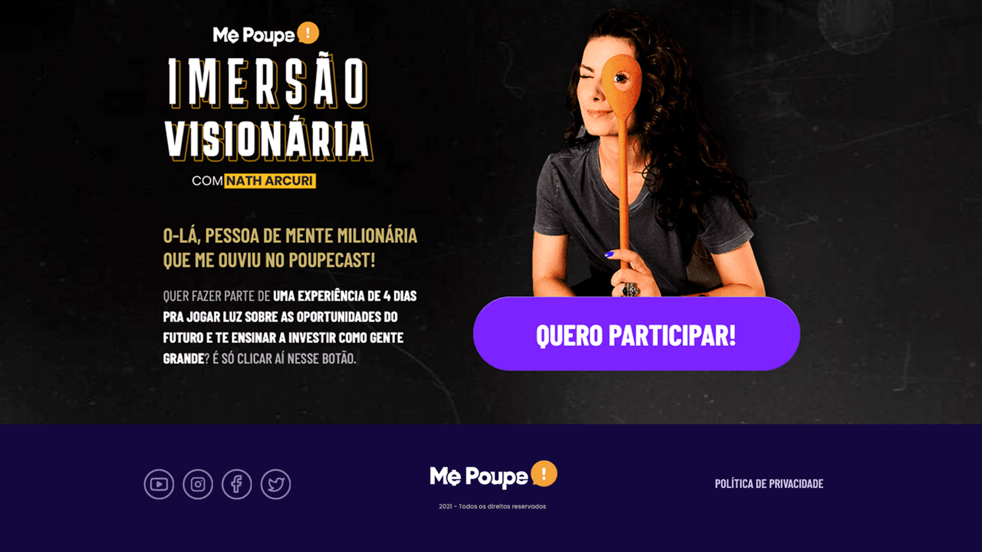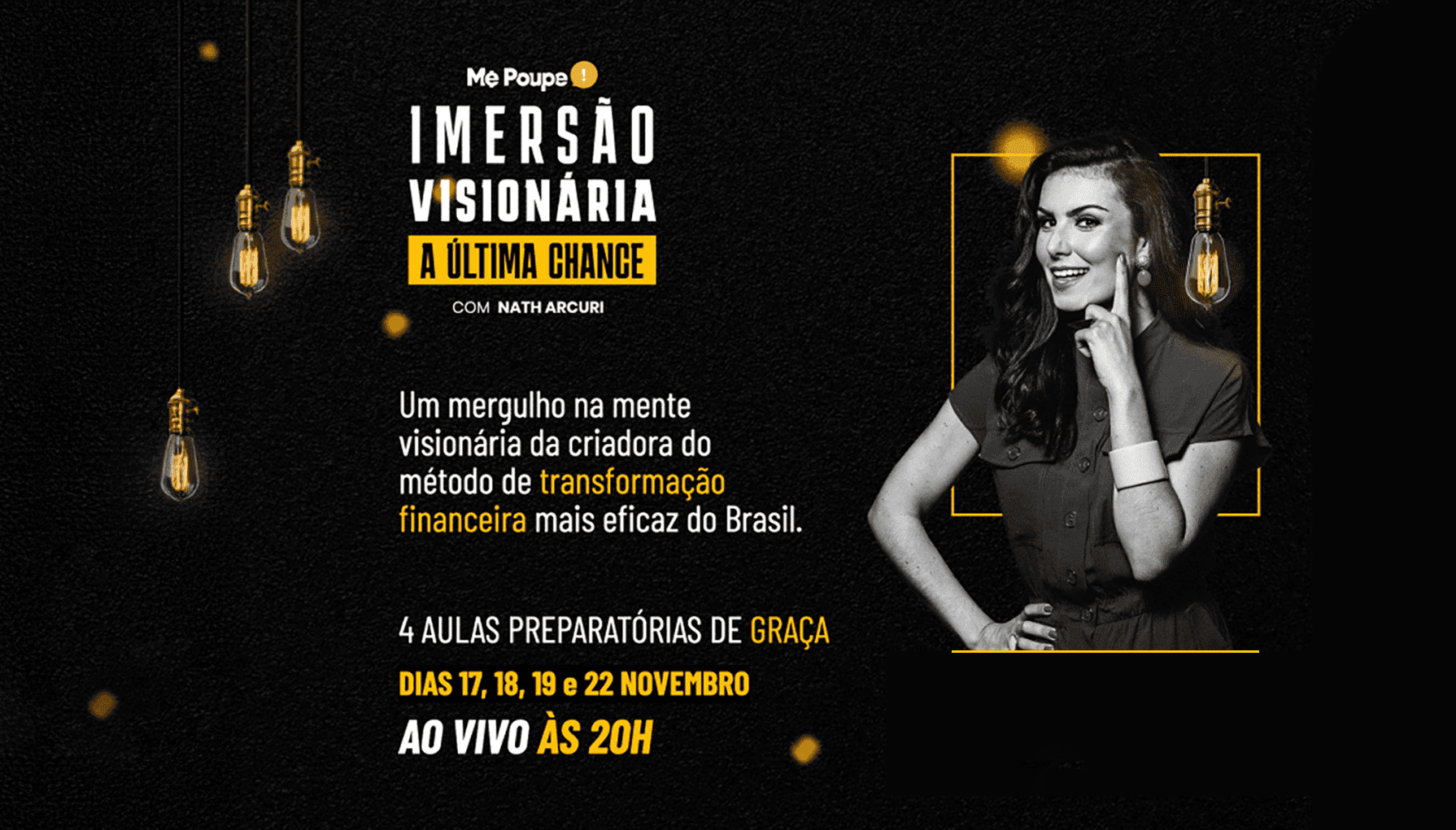 O principal curso da Nathalia Arcuri (Me Poupe!). Desenvolvemos uma identidade inspirada na jornada do herói, utilizando a metáfora da escalada da montanha para transmitir evolução, conquista e transformação financeira.